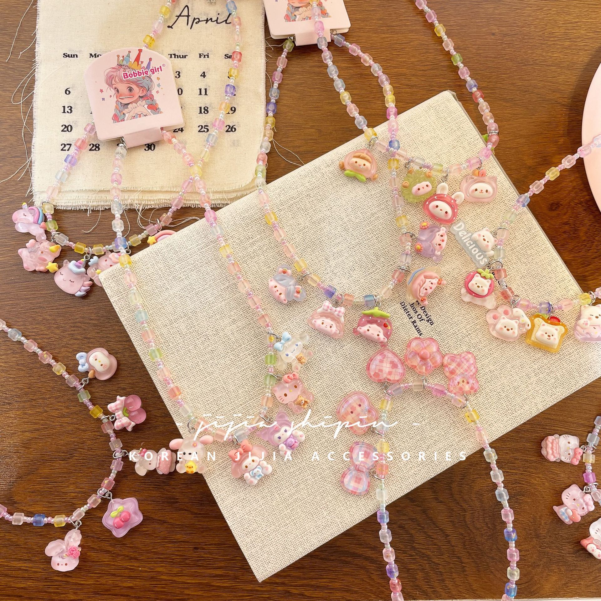 Cute Cartoon Children's Necklace Japanese and Korean Hand-made Color Beaded Pendant Necklace Children's Accessories Princess Jewelry