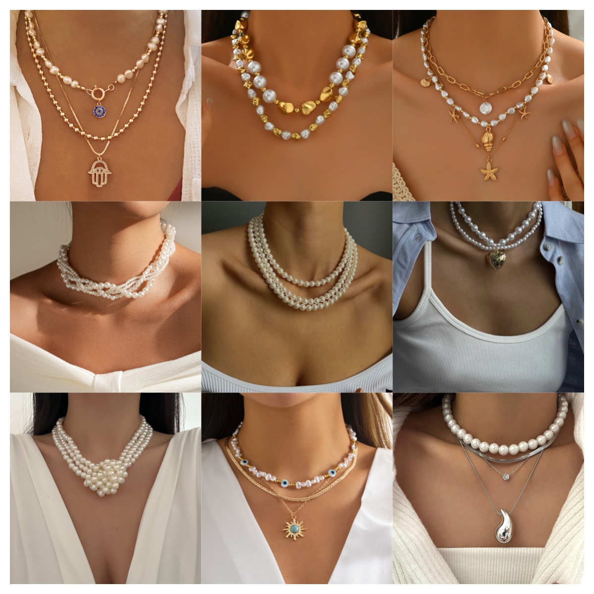 European and American jewelry foreign trade high-grade metal chain size pearl necklace women's fashion multi-layer neck chain clavicle chain