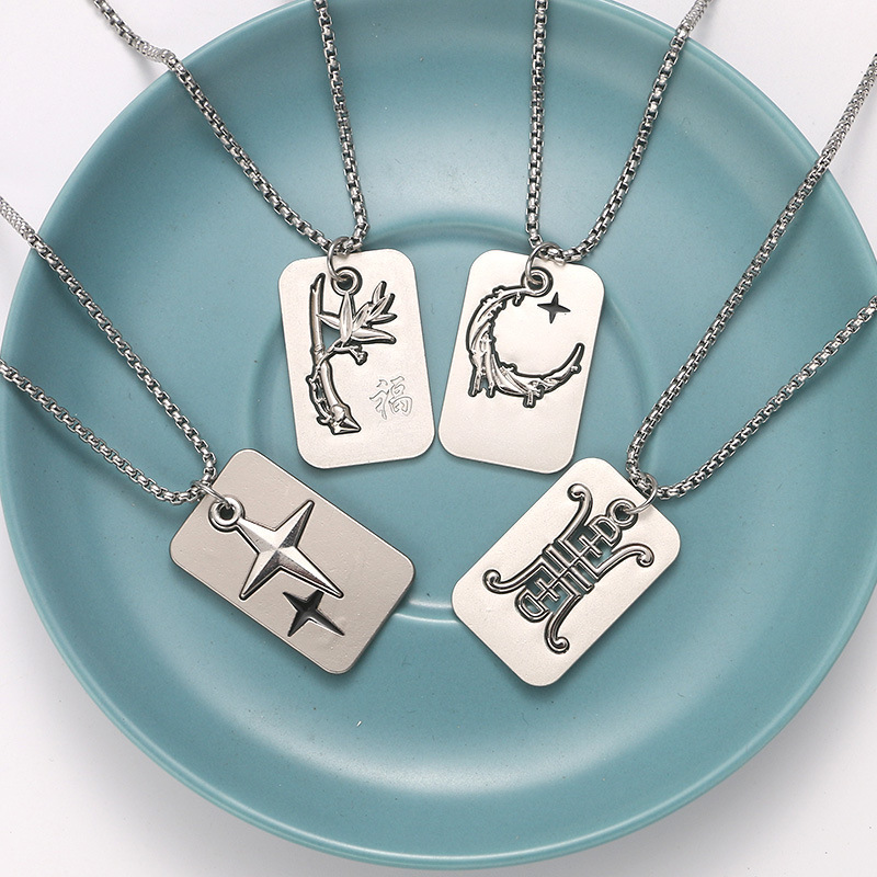 European and American Hot-Selling Cross Necklace for Men and Women, Fashionable and Trendy Couple Titanium Steel Necklace, Square Pendant Sweater Chain