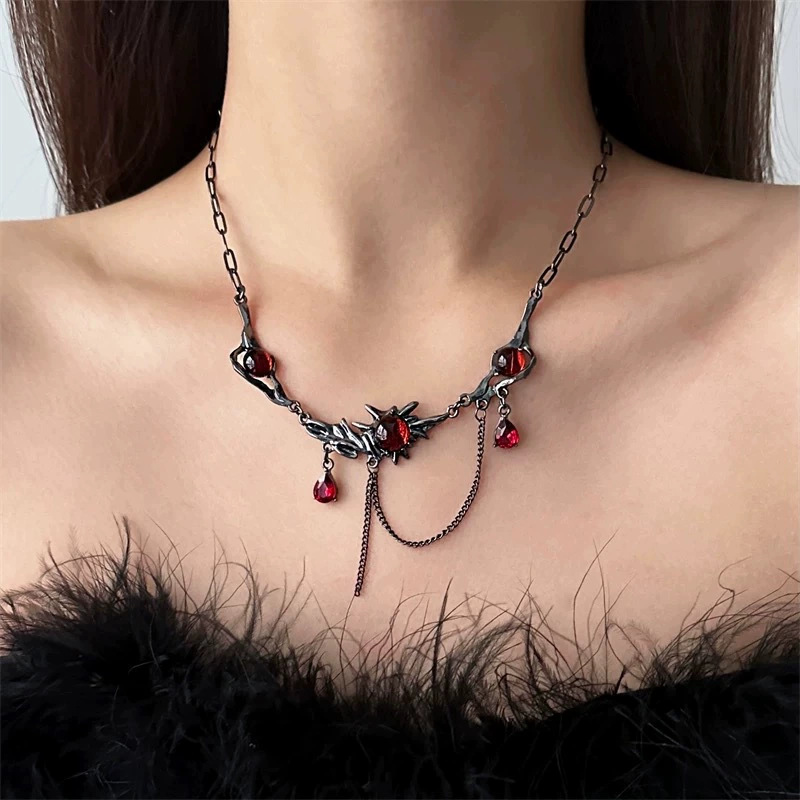 Punk Dark Style Red Zircon Gun Black Tassel Chain Necklace Women's Niche Simple Cool Trendy Collarbone Chain