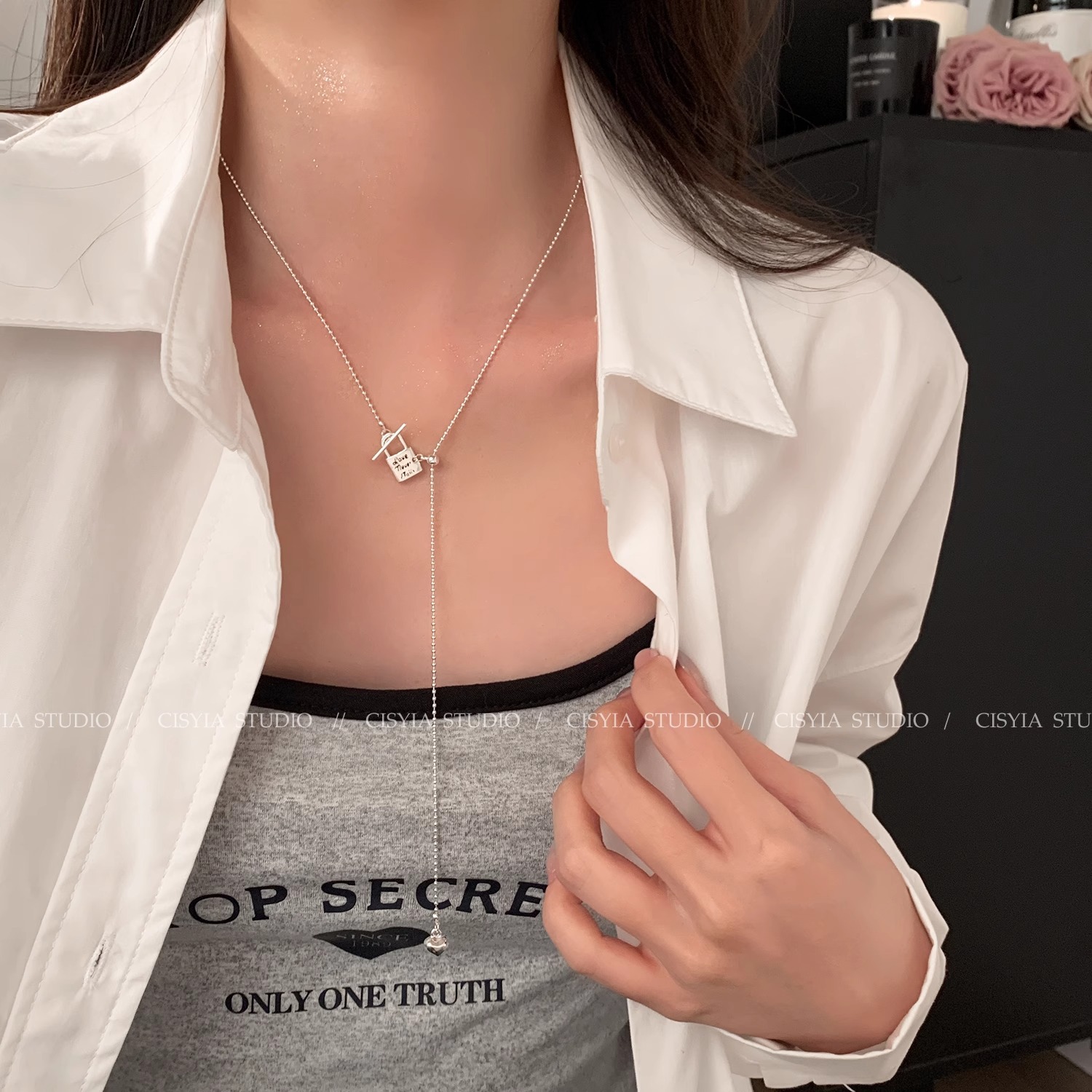 Korean Style Ins Pull-out Love Necklace Women's 2025 New High-end Elegant Woolen Chain Lock Clasp Chain