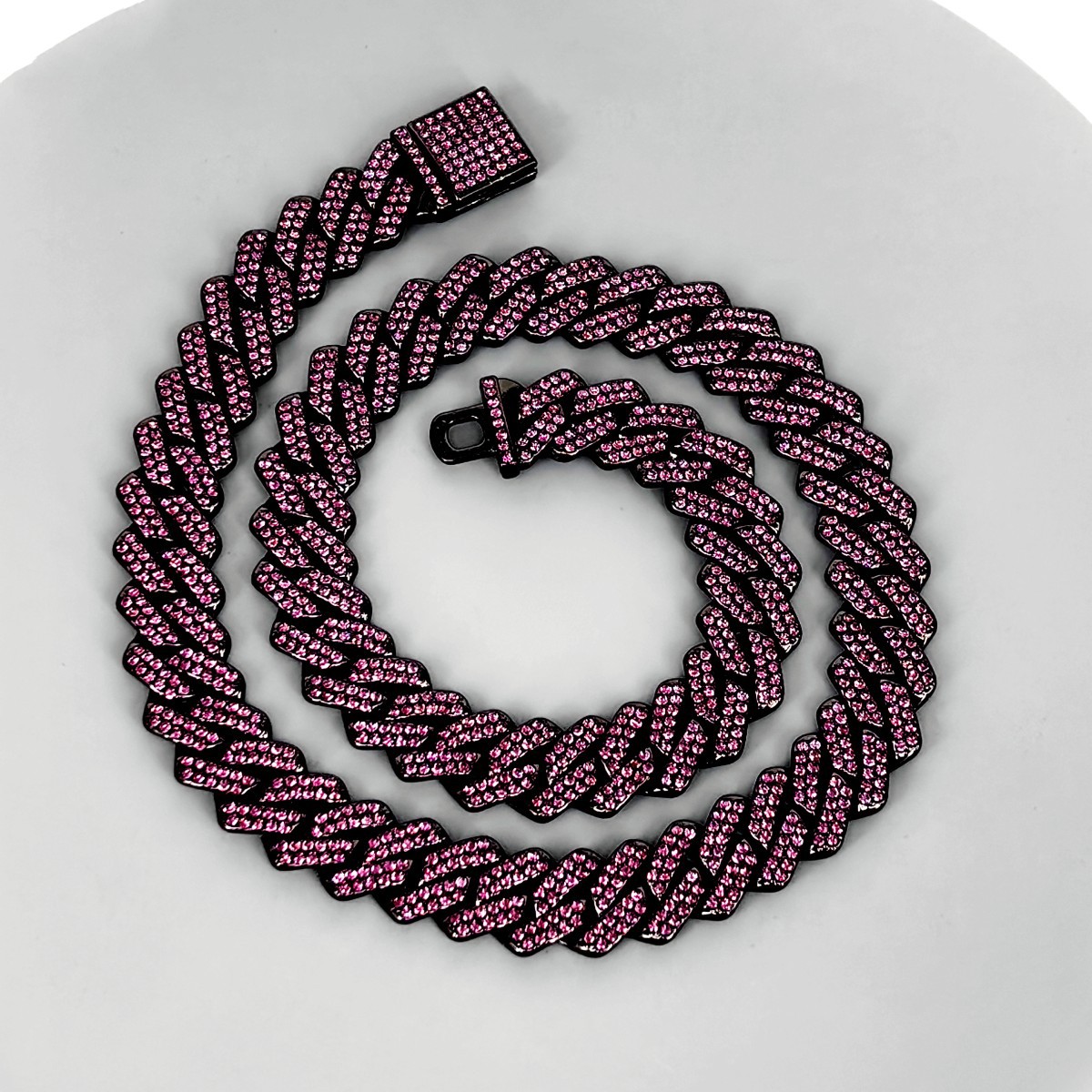 New Hip-Hop Style 14 Rhombus Purple Diamond Flip Cuban Chain Necklace Trendy Original Design Alloy Cross-Border