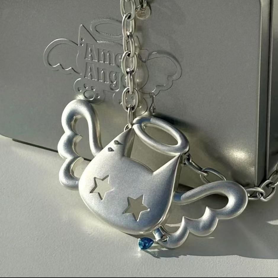 Angel Wings Cat Necklace Niche Cartoon Cute Exaggerated Accessories Ins Style Jewelry