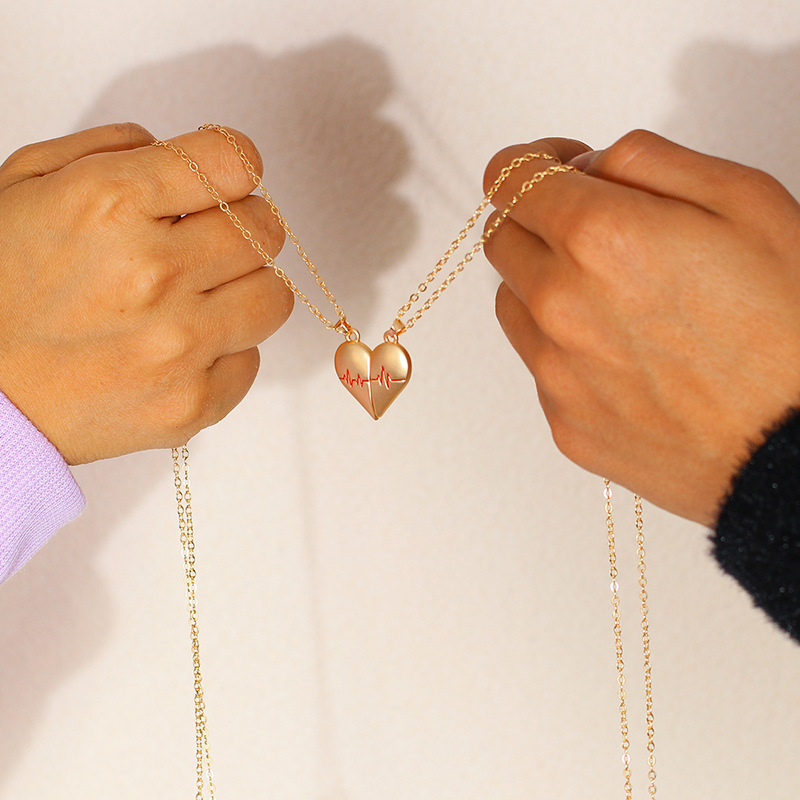 European and American Cross-Border Hot Style Magnetic Electrocardiogram Couple Necklace Attracting Love Pendant Clavicle Chain Accessories Wholesale