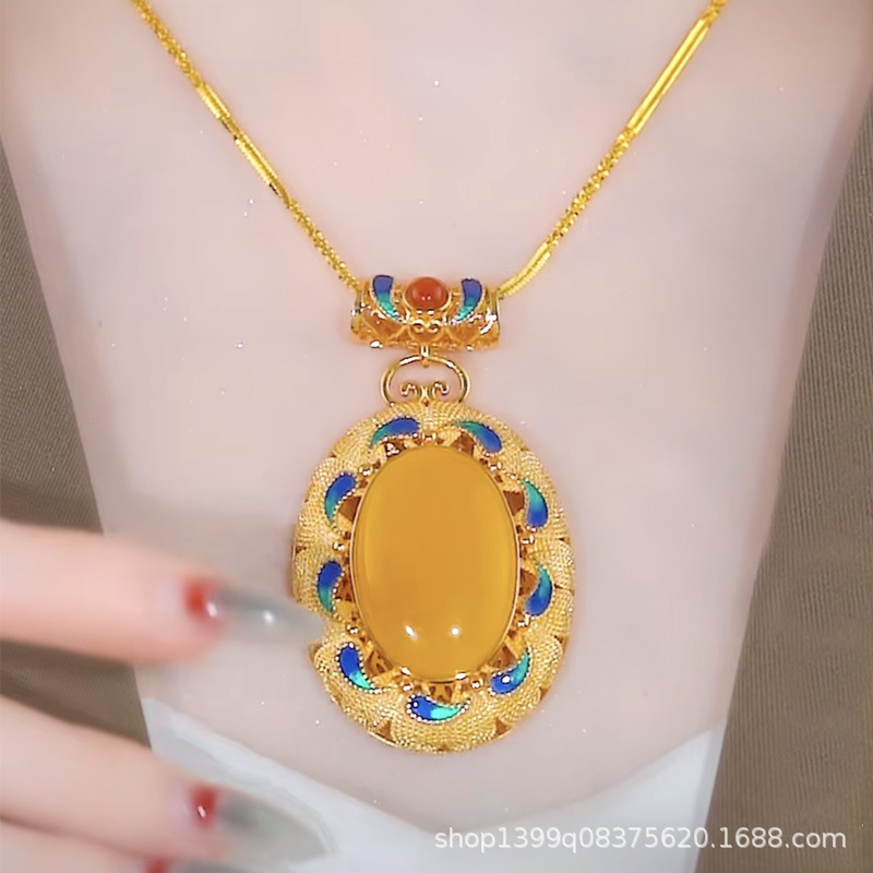 Elegant ancient style gold-plated imitation amber beeswax egg surface pendant national fashion palace style cloisonne women's pendant accessories New