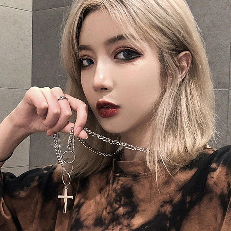 European and American Cross-border Geometric Cyber Gothic Unisex Necklace Personality Punk Cross Pendant Necklace