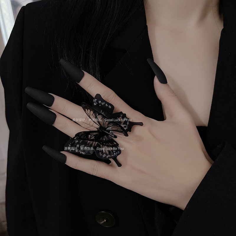 Pure Desire Wind Dark Butterfly Ring Multi-layer Adjustable Spice Girls Online Celebrity ins Trendy Cool Ring Jewelry Accessories Wholesale