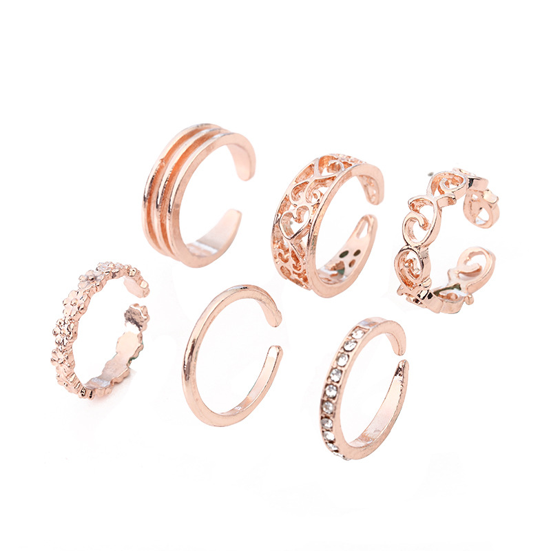 New cross-border Amazon Europe and the United States exaggerated jewelry 6-piece ring diamond hollow love ring foot ring