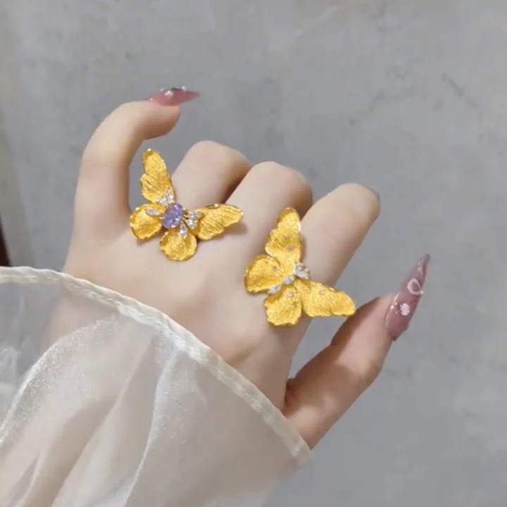 Super Fairy Big Gold Butterfly Ring 2024 New Exquisite Temperament High Sense Personality Light Luxury Niche All-match Ring