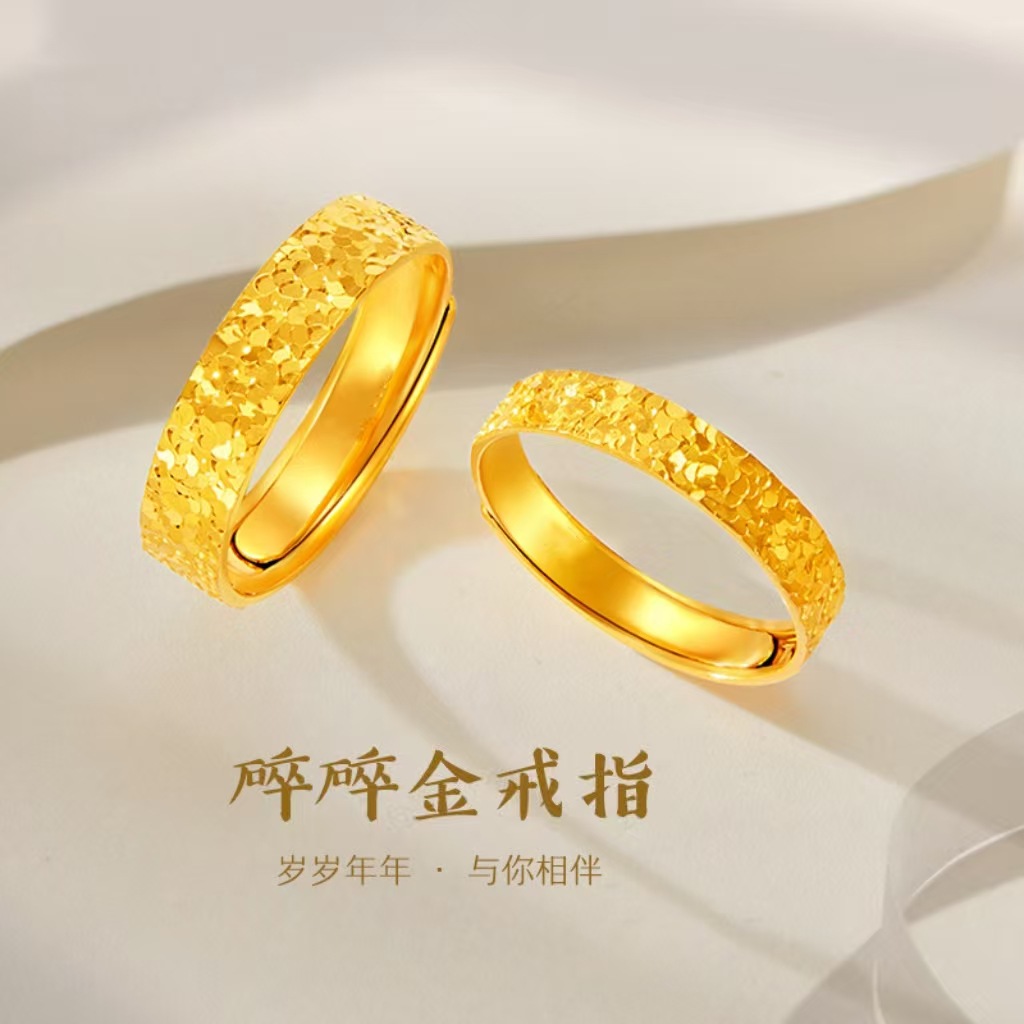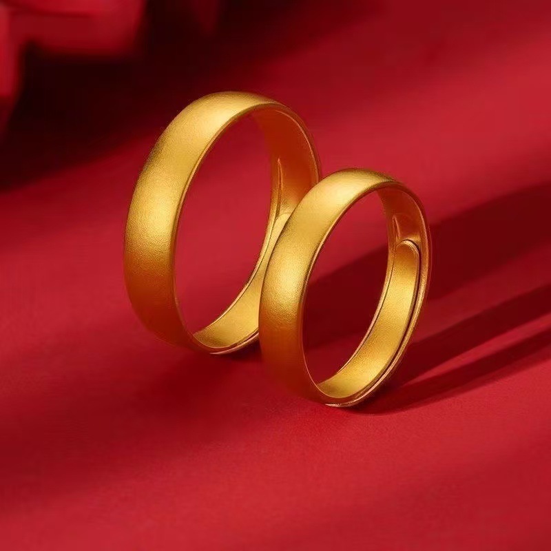 Source Factory Vietnamese Sand Gold Crushed Ice Men and Women Couple Rings Imitation Gold Color Live Mouth Adjustable Ring Wholesale