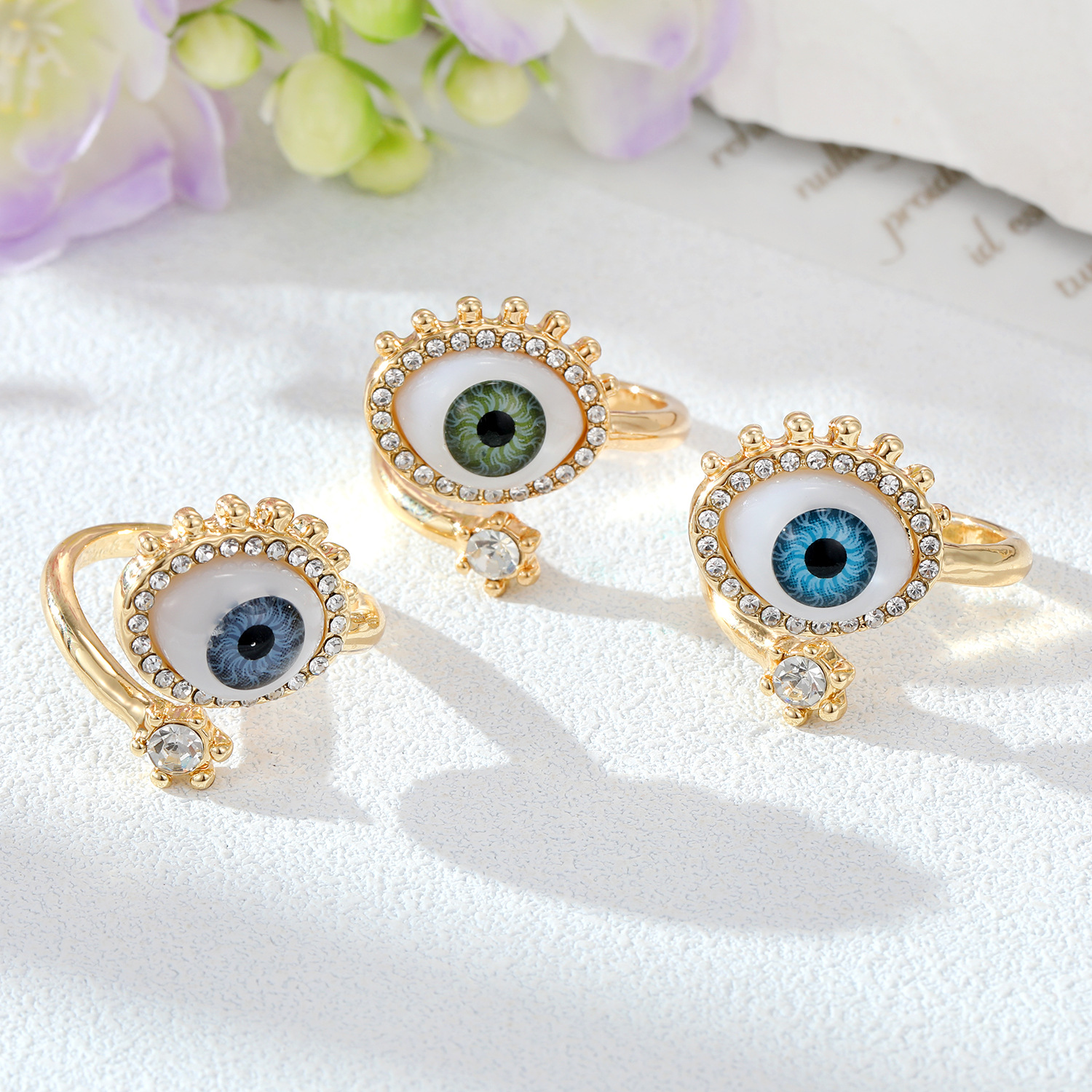 European and American Cross-Border New Fashion Devil's Eye Ring Simple Colorful Eye Diamond Ring Versatile Personalized Hand Jewelry