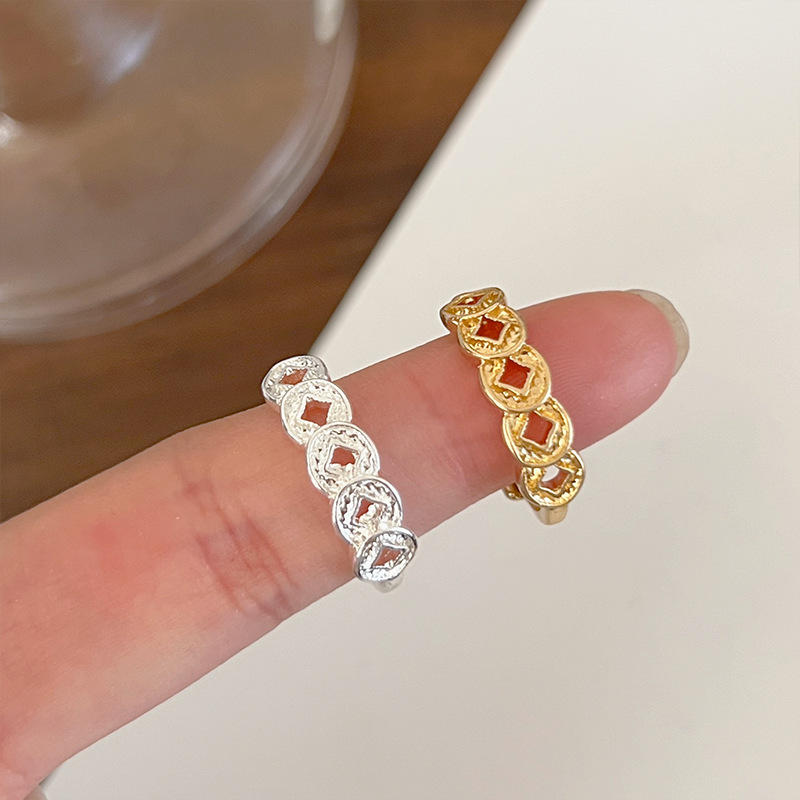 New Chinese Style Five Emperors Money Ring, Exquisite High-End Fortune-Bringing Copper Coin Ring, Niche Design, Simple Retro Cut Out Ring