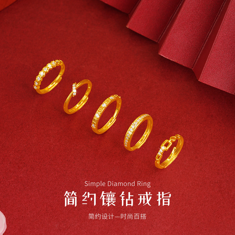 Simple diamond ring Women's elegant fashion all-match diamond-embedded copper alloy jewelry adjustable factory direct supply