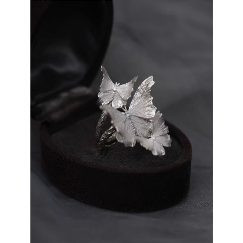 Cross-border European and American Retro Alloy Butterfly Ring Opening Adjustable Animal Ring Carved Butterfly Finger Ring Bracelet