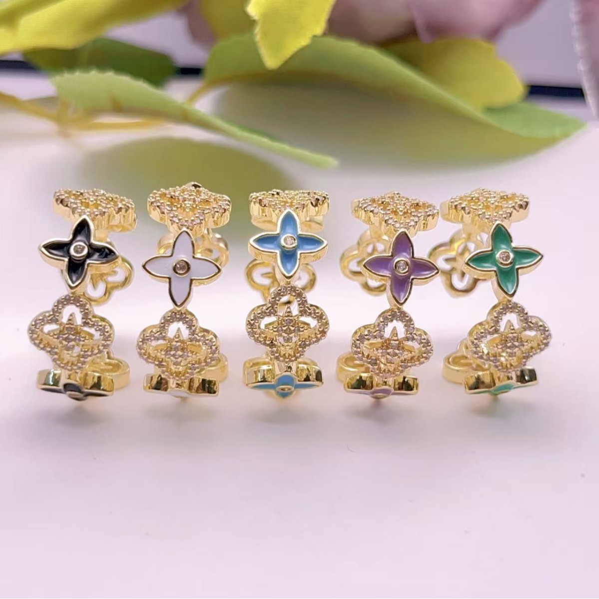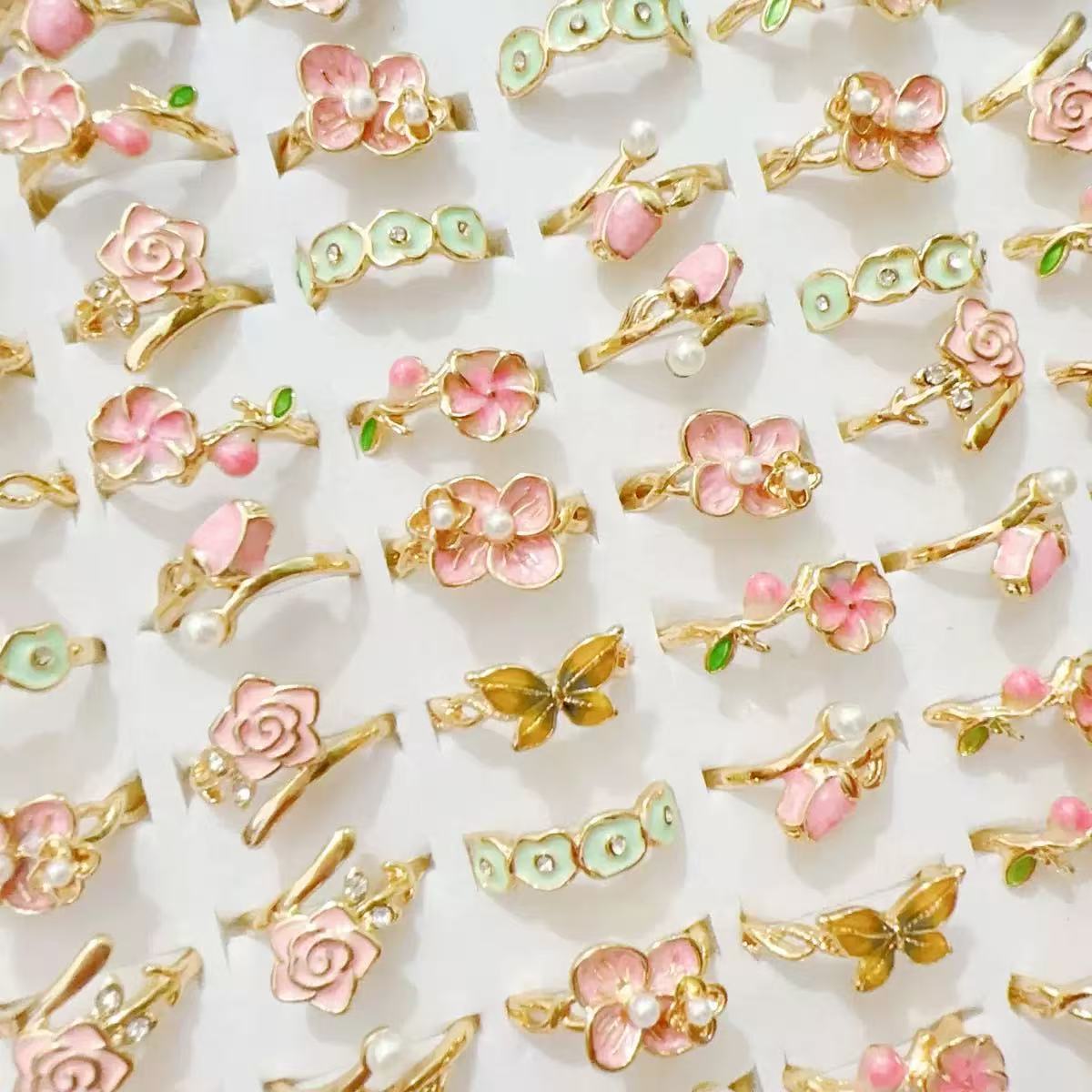 Camellia Oil Drop Jewelry Simple Girls Index Finger Ring Night Market Mixed Multi-Style Oil Painting Flower Hand Jewelry Wholesale