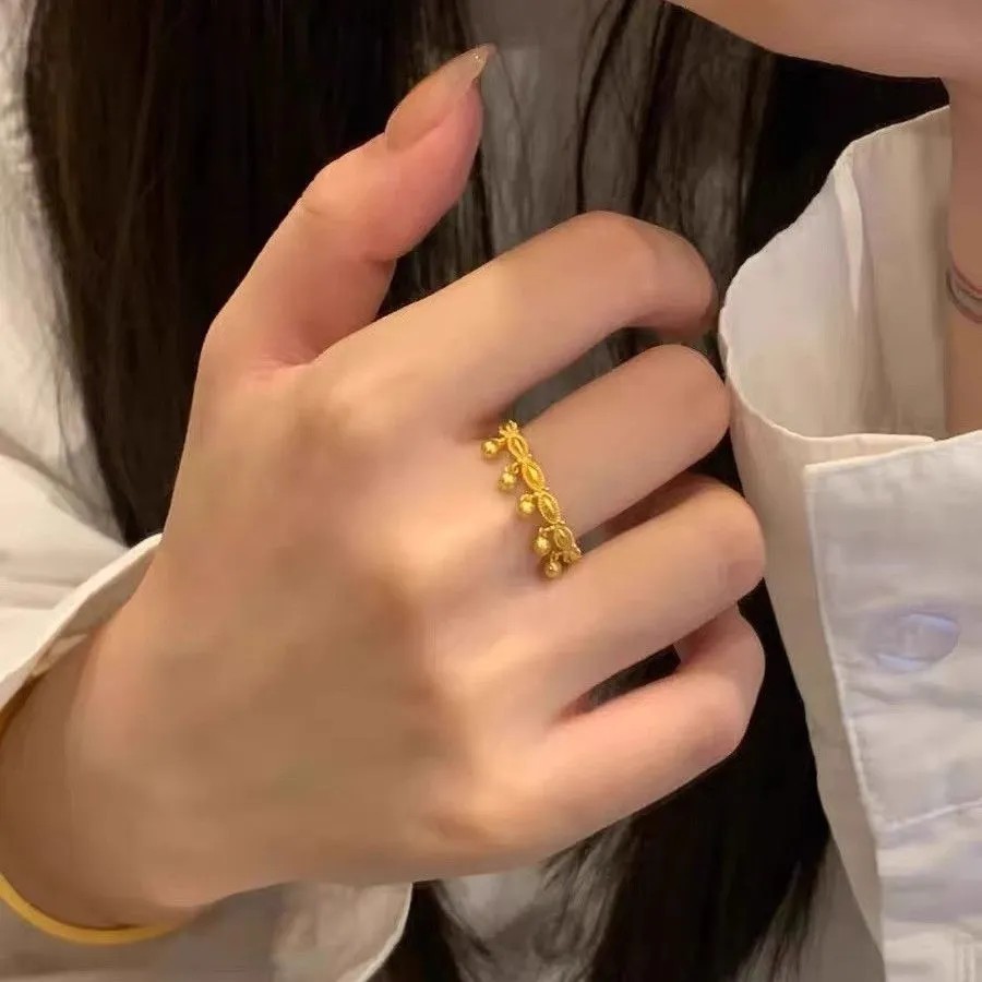Little Red Book's Same Style Lace Wave Tassel Bead Ring Women's Fashionable Elegant Versatile Smart Accessible Luxury Ring Trend