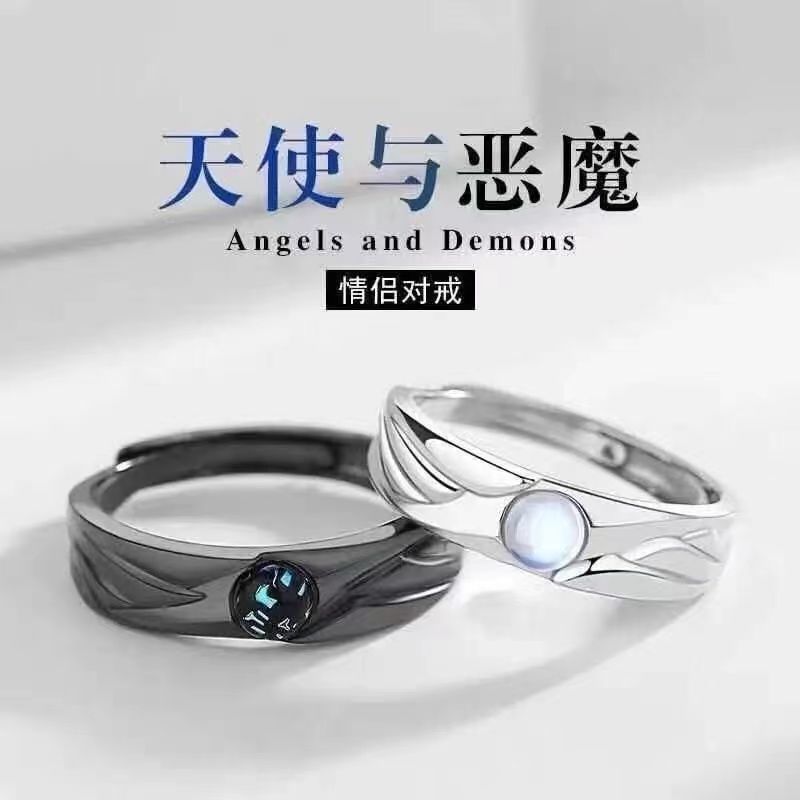 Angel and Devil Couple Ring Black and White Pair Student Fashion Open Ring Fashion Simple Couple Gift