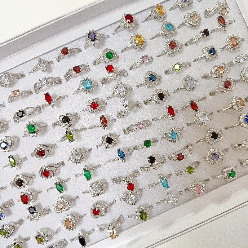 Hot Selling European and American Cross-Border Amazon New Fashion Trend Four-Claw Glass Diamond Ring Women's Colorful Gold Hand Jewelry