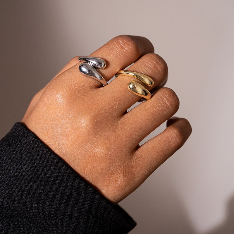 European and American Cross-Border Jewelry Design Hip-Hop Metal Water Drop Hug Ring Simple Ins Style Geometric Open Ring