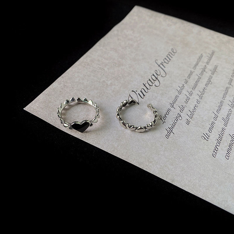 ins Vintage Two-Piece Love Ring for Men and Women Black Heart-Shaped Opening Adjustable Ring Fashion Jewelry