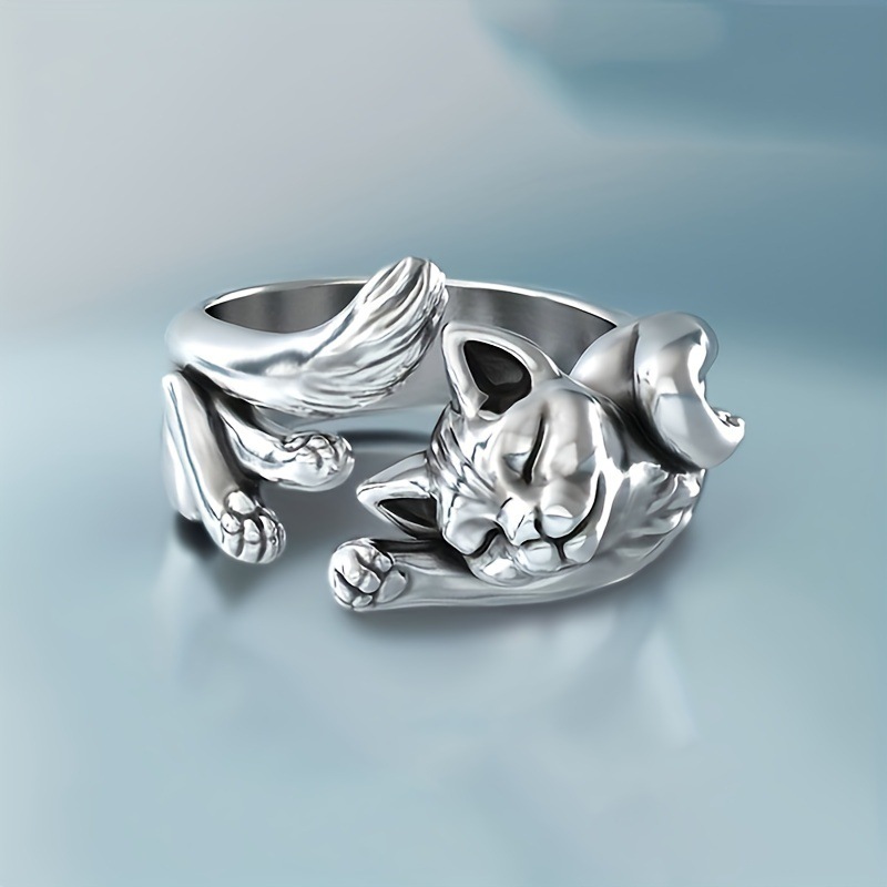 European and American New Lucky Cat Ring Retro Old Open Ring Stylish New Animal Joint Ring Cat Fashion
