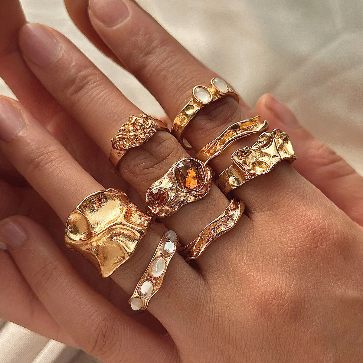 Europe and the United States cross-border geometric UV plating alloy round ring 5 piece set irregular smooth opening ring suit