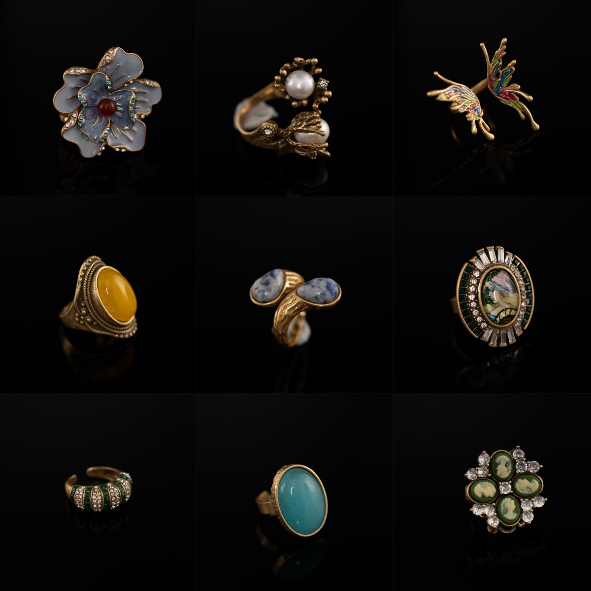 Vintage Bronze Alloy Cross-Border Live Broadcast Ring, Retro Palace Style, High-End Feel, Women's Designer Style, 25 New Rings