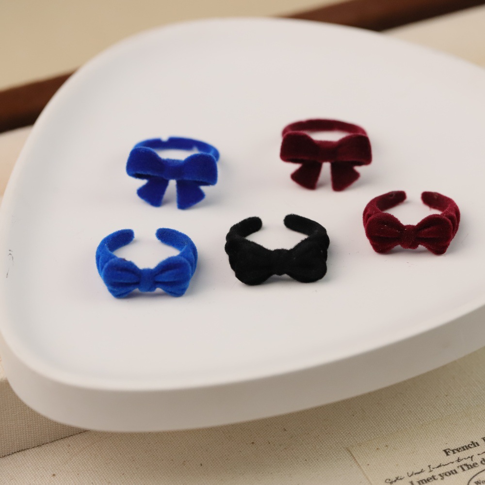 Xiaohongshu Klein High-End Original Production Blue Ring Christmas Style Flocked Bow Open Ring Sweet