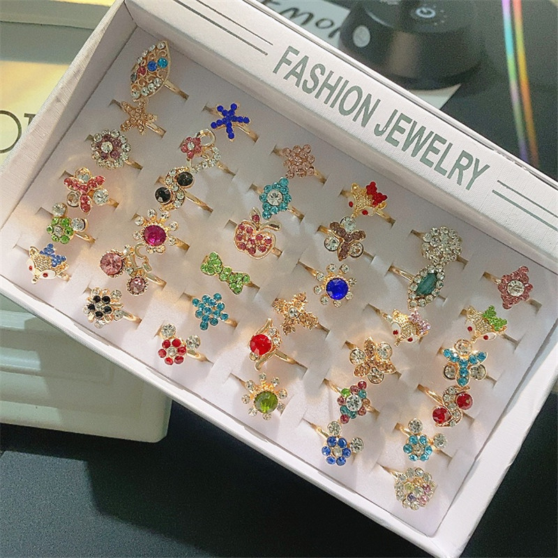 Korean fashion Joker gold plated non-fading ring opening adjustable alloy diamond colored diamond ring women's mixed batch