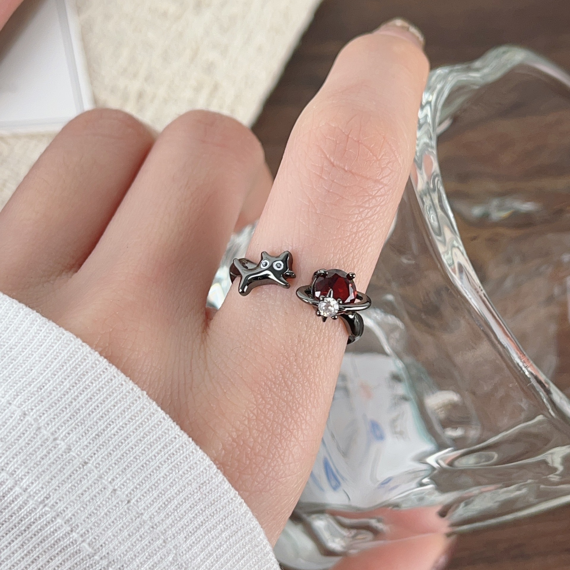 New Dark Style Zircon Cat Metal Open Ring for Women Retro Light Luxury Commuting Versatile Fashion Ring Bracelet
