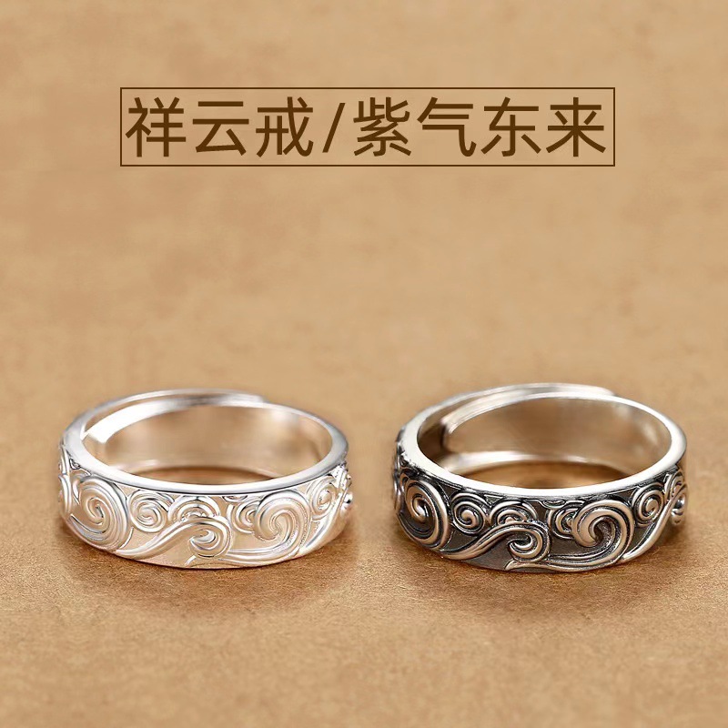Ziqi Donglai Ring Men's Trendy ins Personalized Men's Single Ring Fashion Antique Retro Embossed Xiangyun Ring