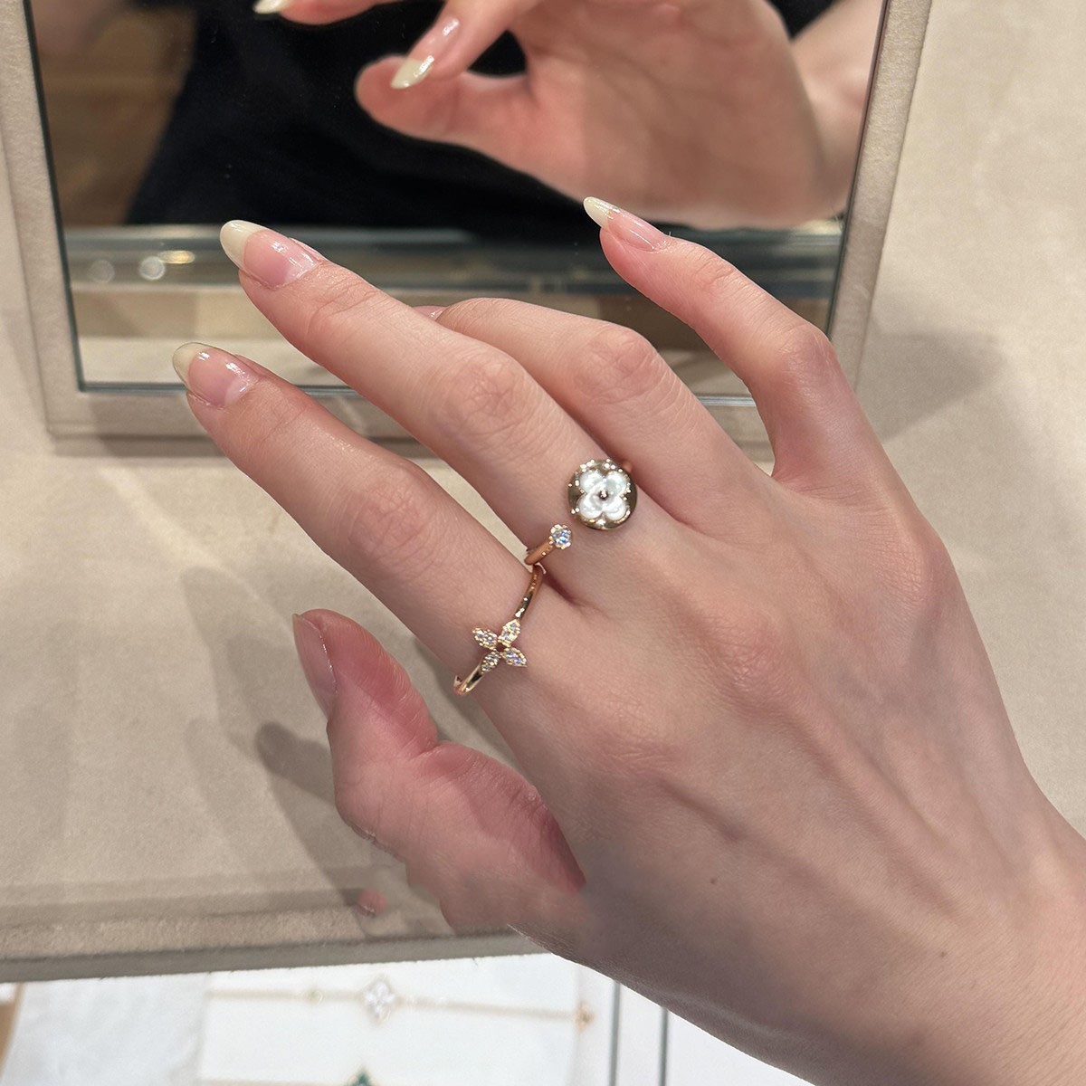 French-Style Light Luxury High-End Sparkling Diamond Flower Ring for Women, Simple and Elegant Niche Design Index Finger Ring with a High-End Feel