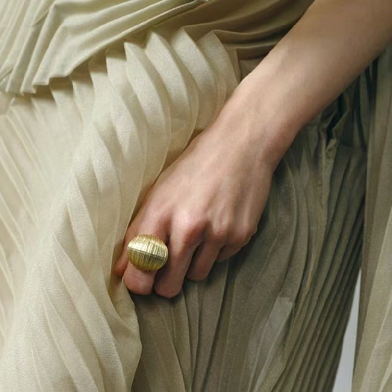 Niche Light Luxury Simple Gold Hook Silk Craft Ring Round Egg Simple Fashion European and American Style Beanie Same Style Ring
