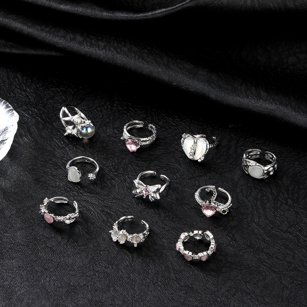 Pearl Zircon Ring Female Niche Design Personalized All-match Finger Ring Stacked Forefinger Ring Opening Adjustable