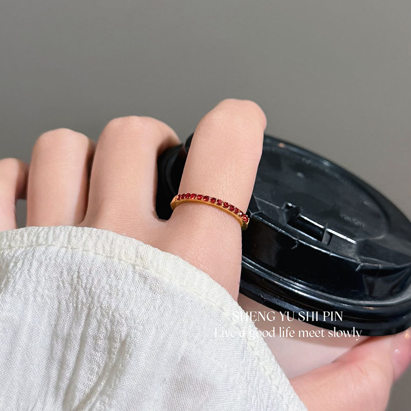Ultra-Fine Cool Red Sparkling Diamond Stackable Versatile Fashionable High-Value Stackable Closed Index Finger Ring for Women