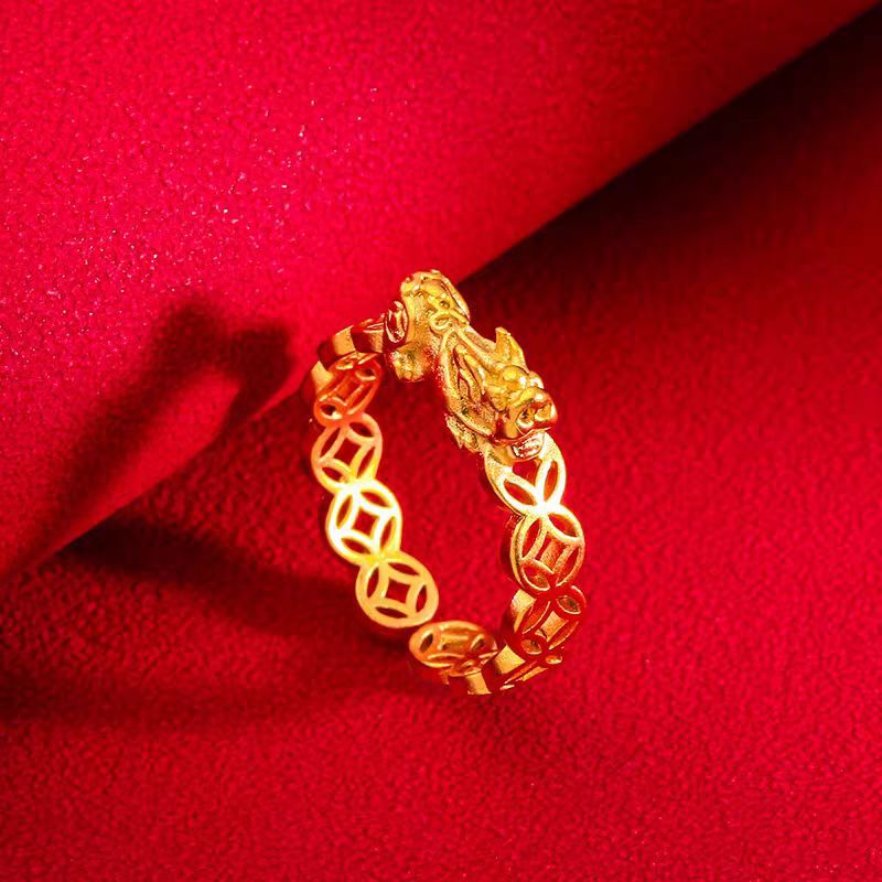 Vietnamese Sand Gold Pixiu Ring Imitation 18K Gold Women's Fortune Coin Live Ring Is Not Easy to Fade