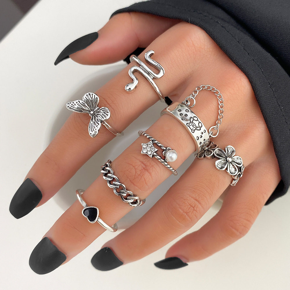 European and American Cross-border Jewelry Fashion Commuter Light Luxury Butterfly Chain Black Glue Dropping Ring Niche Design Sense of Love