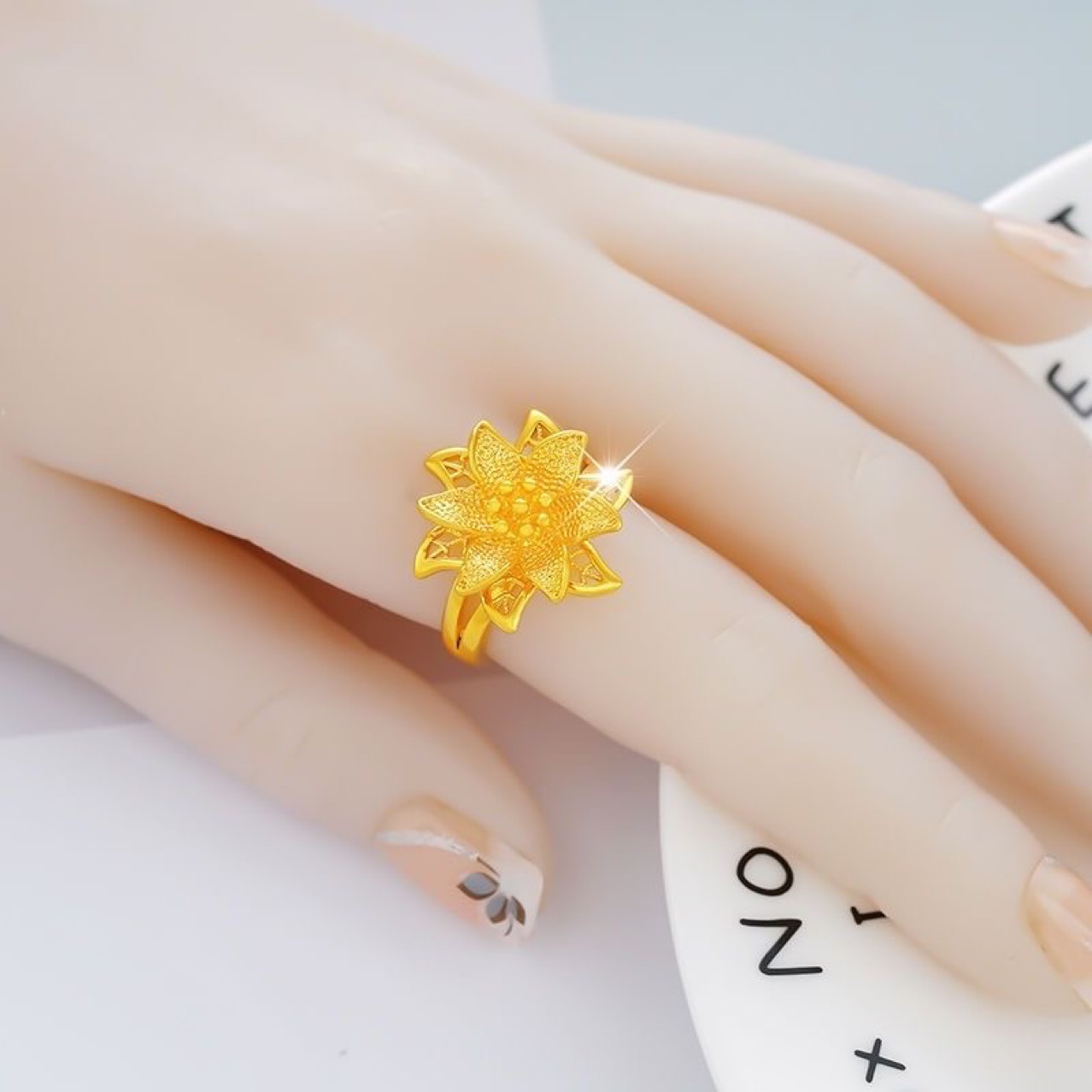 High Imitation Vietnamese Gold Sand Gold Cut Out Flower Ring Women's Open Ring Women's Sand Gold Long-Lasting Color-Preserving Gold-Plated Gift