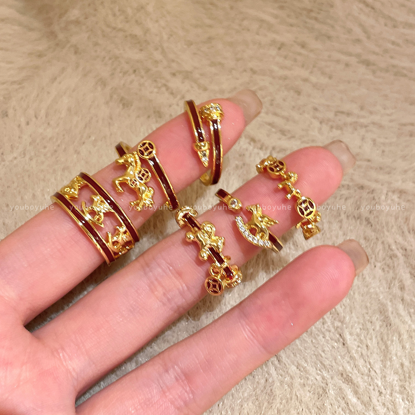 Medieval Style! Golden Pony Zircon Ring Women's Fashion Stylish High-End Index Finger Ring Opening Adjustable Ring
