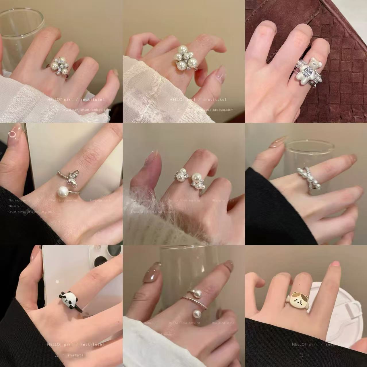 Light Luxury Vintage Diamond-encrusted Flower Ring Fashion Geometric Pearl Gem Index Finger Ring Color-retaining Electroplated Bracelet Accessories