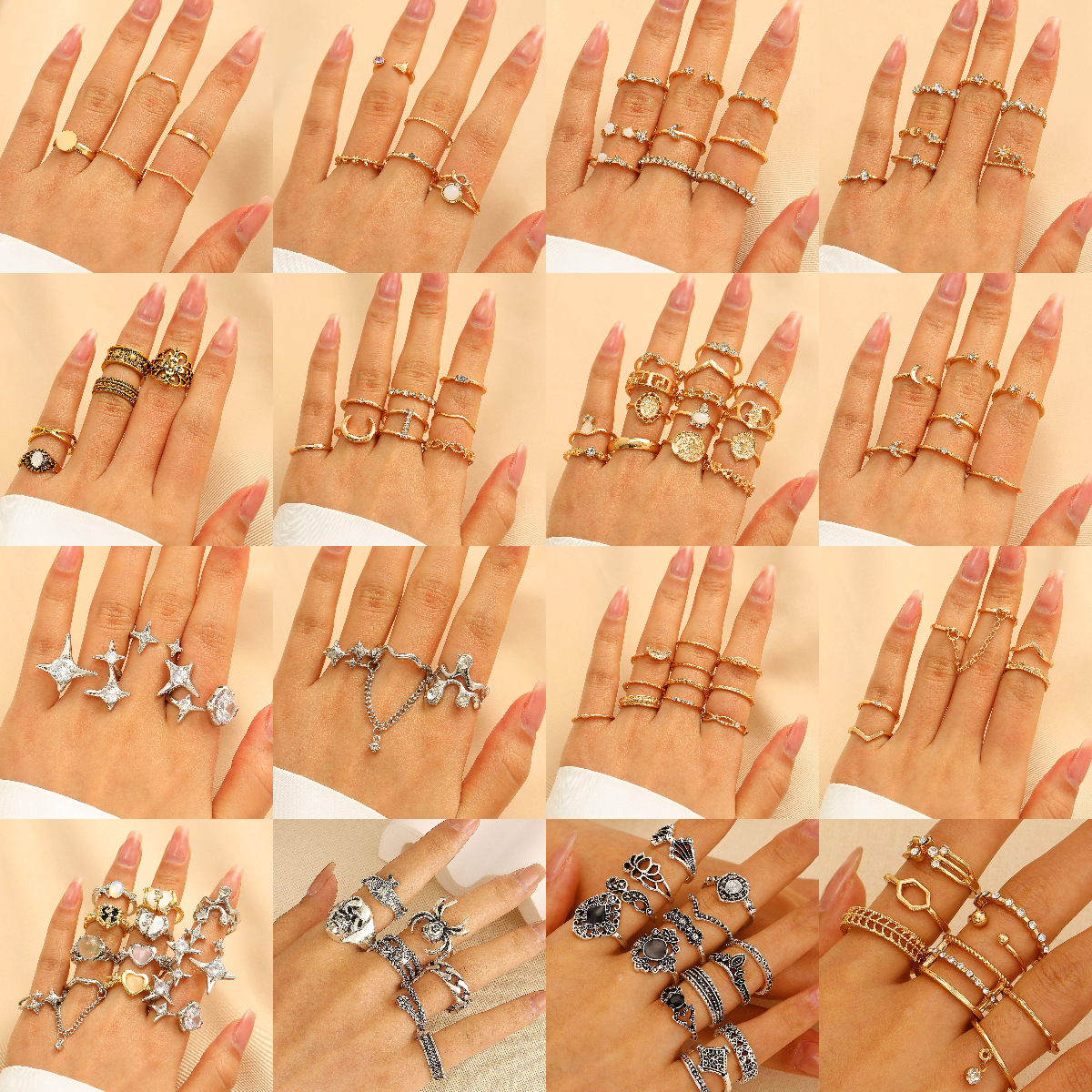 Cross-border New Butterfly Diamond Ring Mixed Batch Pearl Ring Women's Niche High-grade Joint Ring Set 21 Piece Set