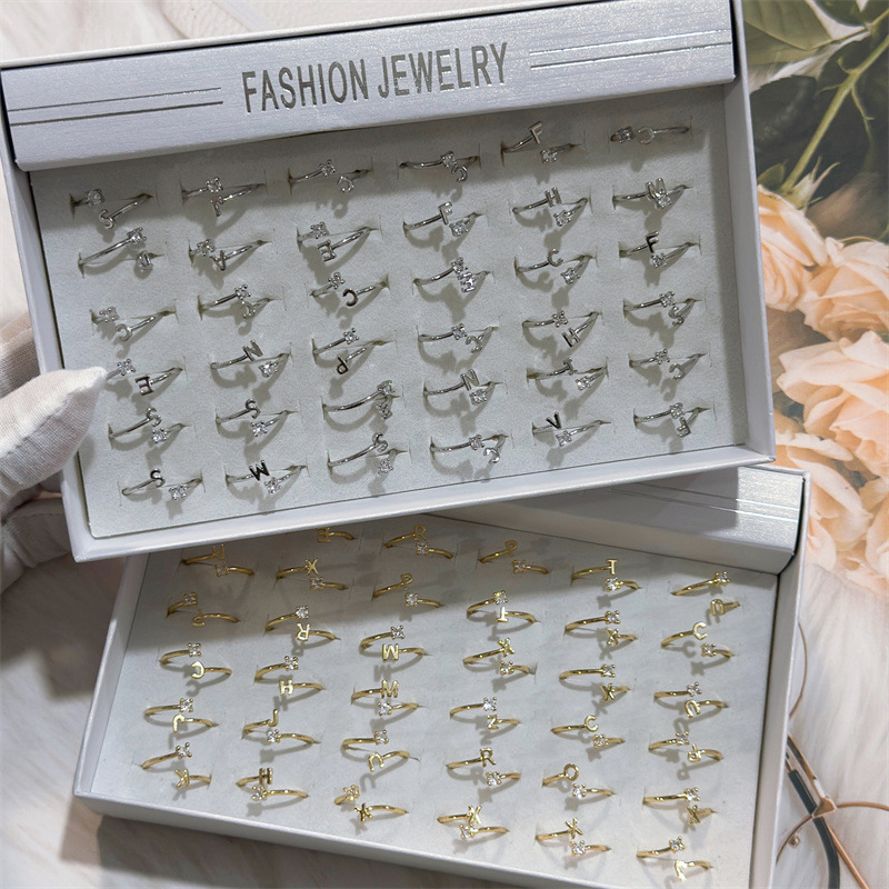 New 26 English Letter Ring Zircon Letter Ring Simple Student Girl Ring Live Mouth Adjustable Ring