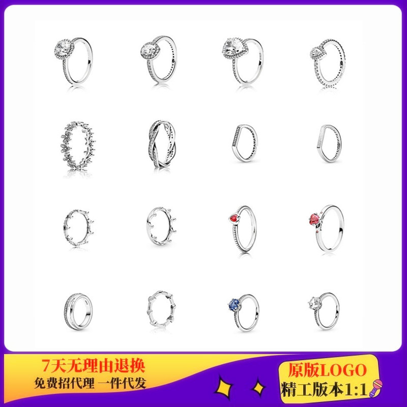 Pandora 925 White Copper Silver Plated Diamond Gem Peach Blossom Love Butterfly Simple Ring Fashion Ring Series