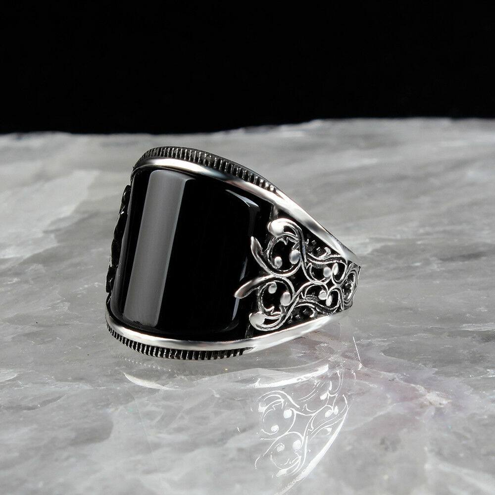 Weiya 2021 New Men's Ring Black Retro Punk Style Carving Pattern Ring Oil Dropping Pattern Unisex Ring