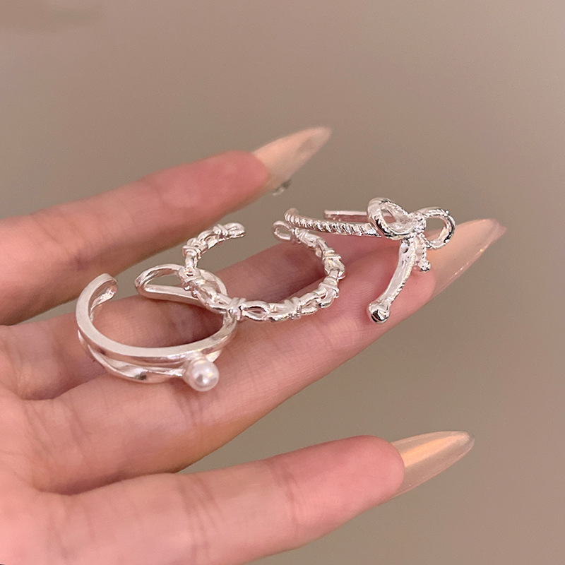 Korean style explosion bow pearl ring women's opening adjustable diet finger ring Joker temperament suit ring wholesale