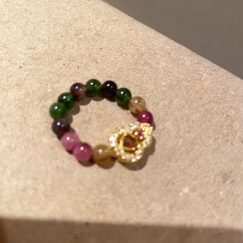 Chinese Dopamine~Tourmaline Gourd Beaded Ring High-End Elegant Index Finger Ring Metaphysical National Style Ring Elastic