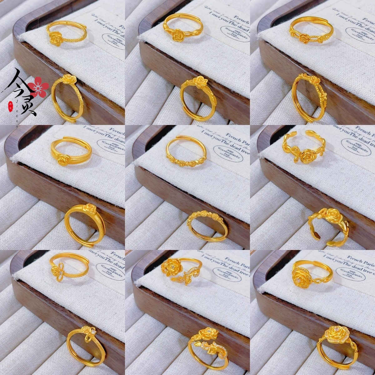 New Cross-border Ring Actress Star Moon Flower Leaves Fashion Ring Elegant High-level Simple Ring