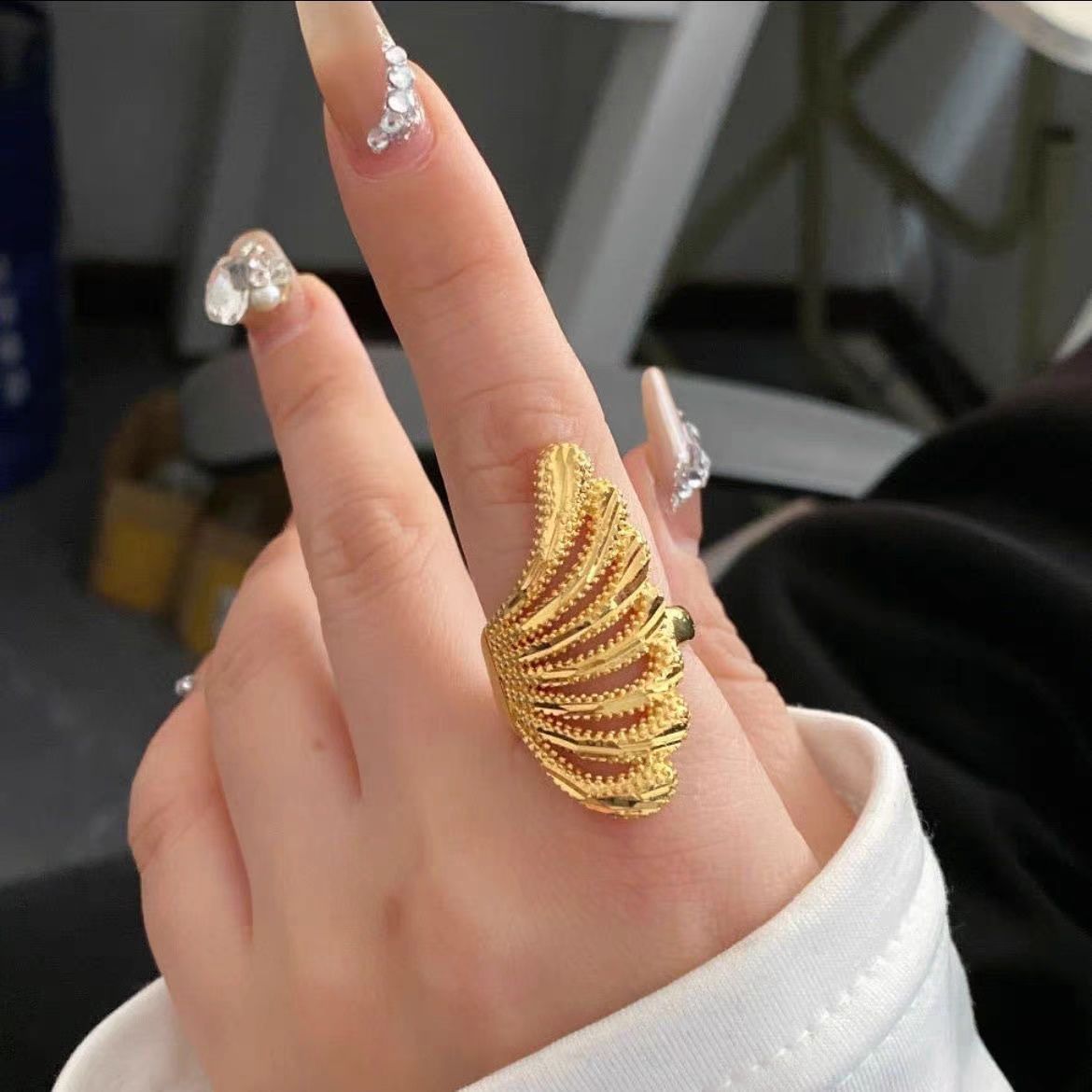 Vintage Women's Phoenix Tail Flower Large Ring, Vietnamese Sand Gold Exaggerated Large Peacock Open Ring, Phoenix Tail Ring Jewelry