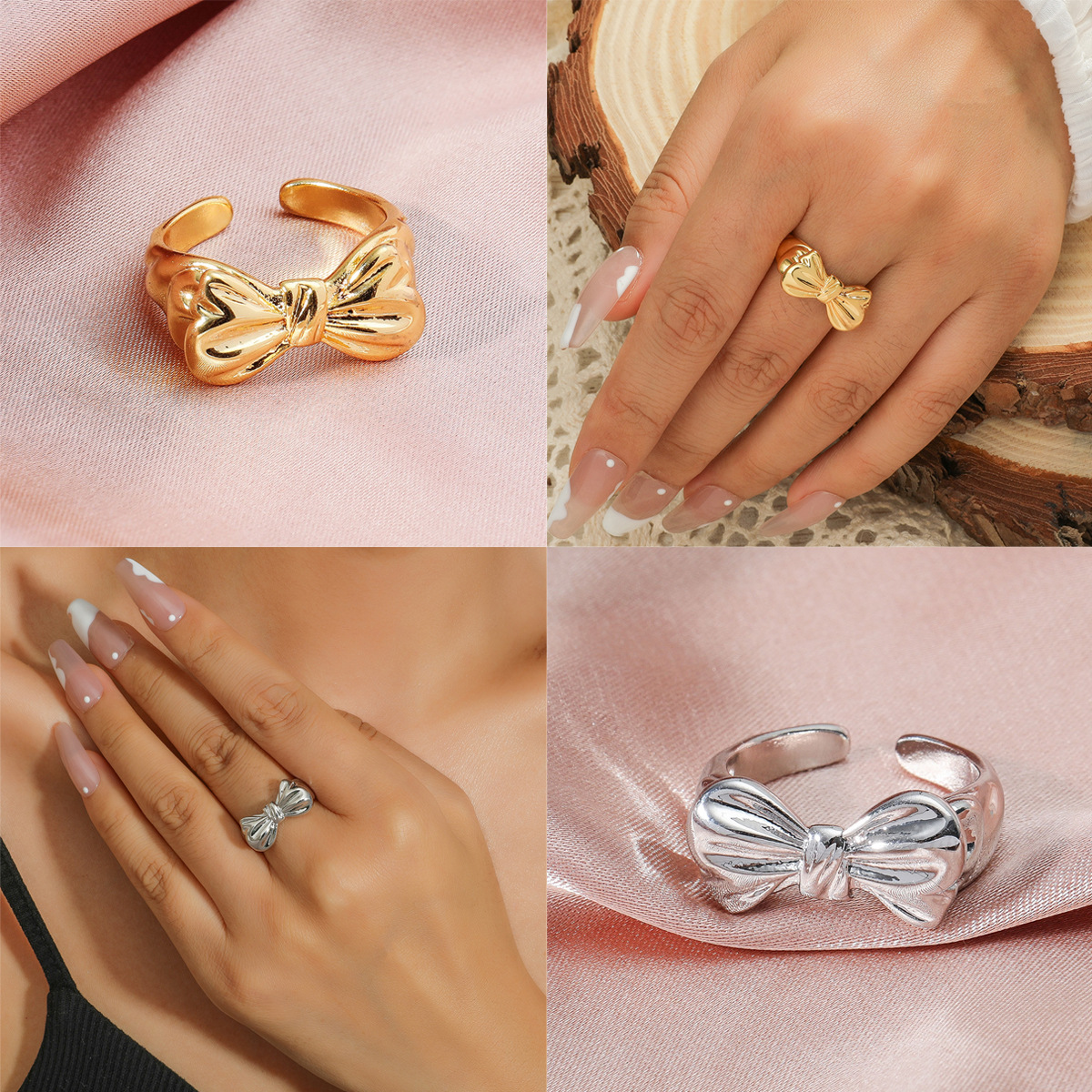 Brass Gold Plated Fadeless Simple Personality Bow Open Ring Female Niche Design Irregular Ring Jewelry