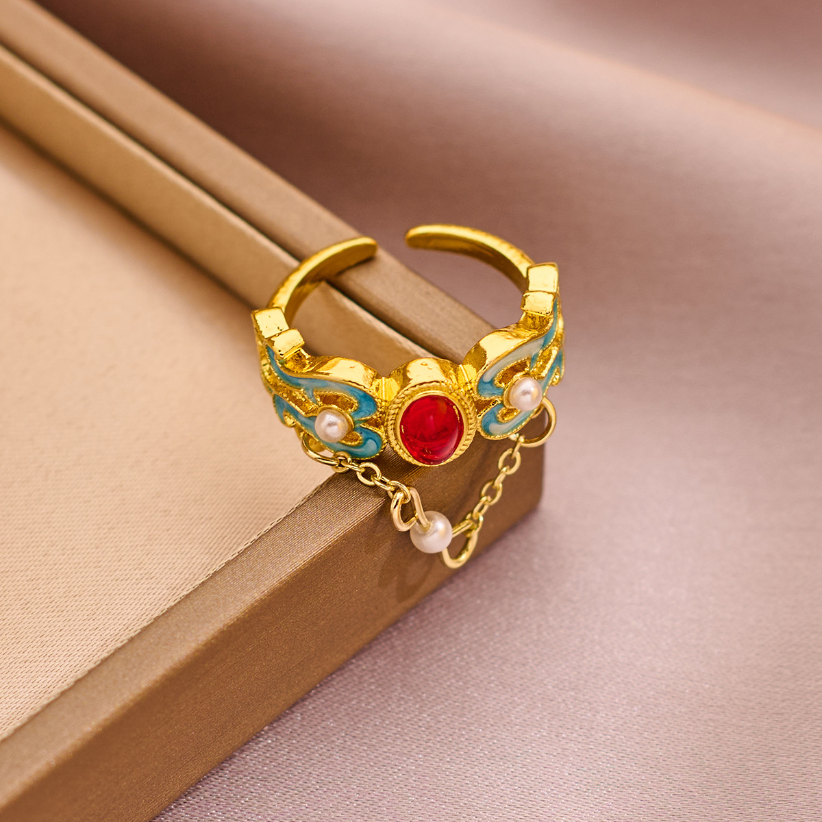 TikTok New Huafeng Diandian Red Treasure Ring High-end Sense Design Fashion Trendy Exquisite Chinese Style Jewelry for Women